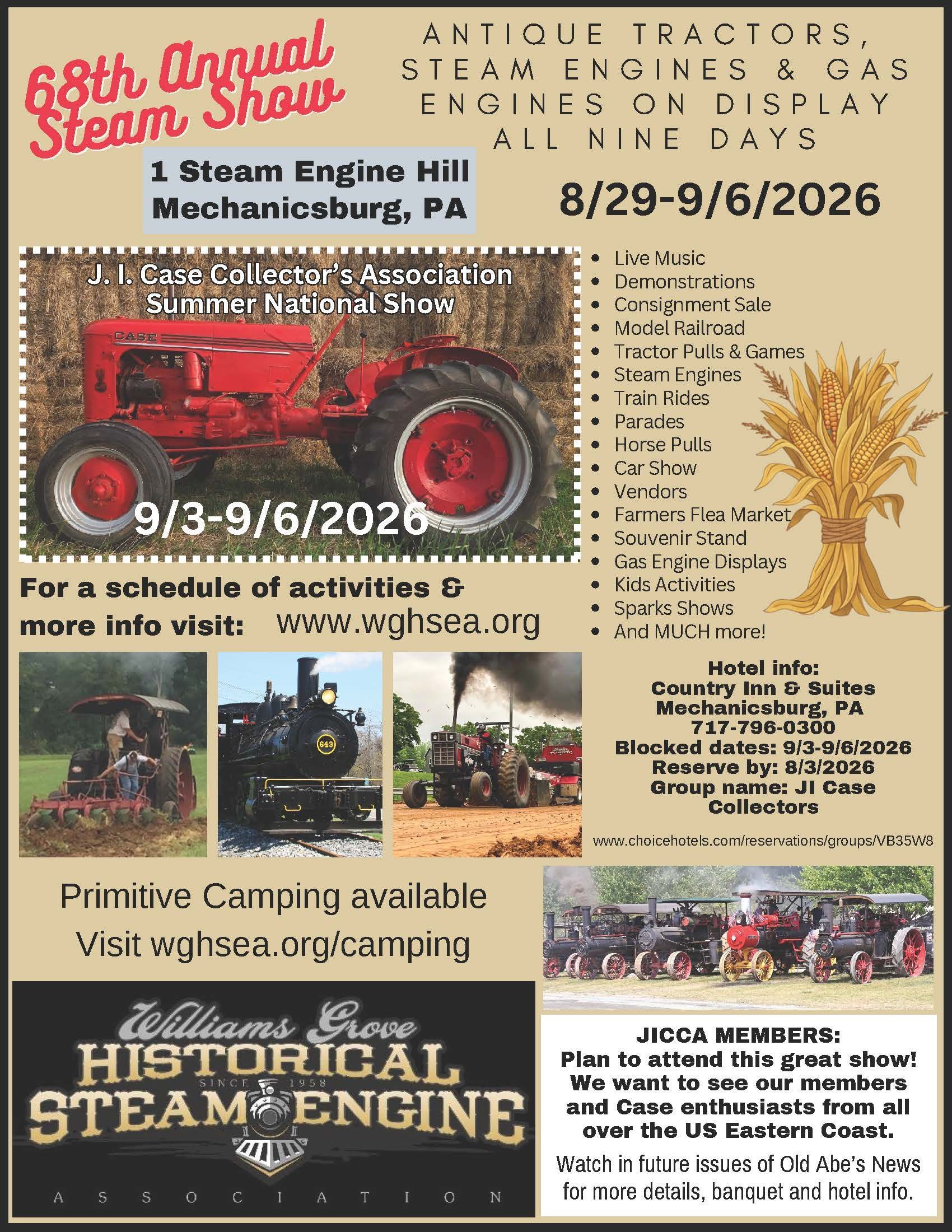 | Sept. 3-6, 2026 | Williams Grove Historical Show | Mechanicsburg, PA |